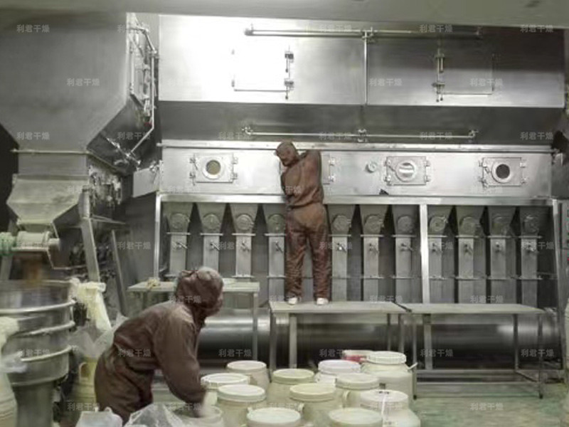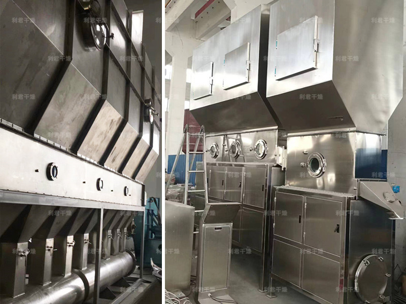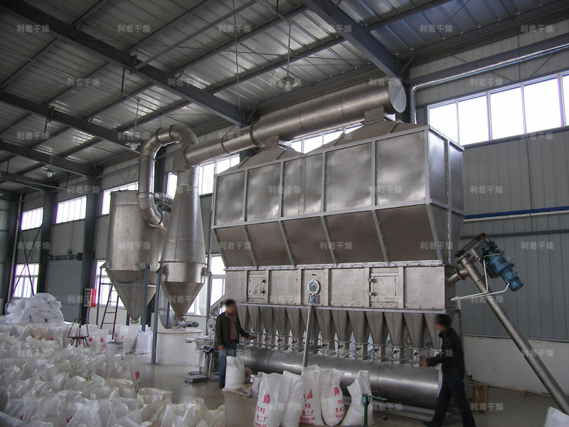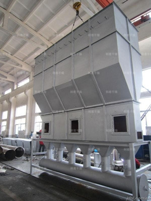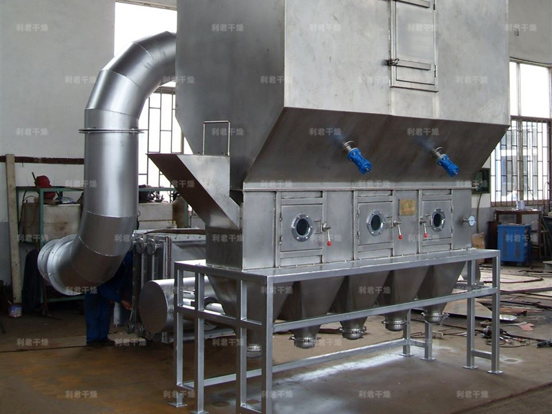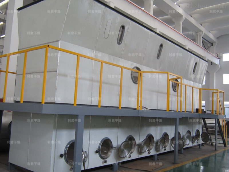 潔凈的熱風經(jīng)閥板分配進入床體內(nèi),從加料器進入的濕物料被熱風形成沸騰狀態(tài)。由于熱風與物料廣泛接觸,增強了傳熱傳質的過程,因此在較短時間內(nèi)就可干燥。如用連續(xù)型,物料從床體的一頭進入,經(jīng)過幾十秒至幾分鐘沸騰干燥,自動從床體另一頭流出。本設備一般進行負壓操作。