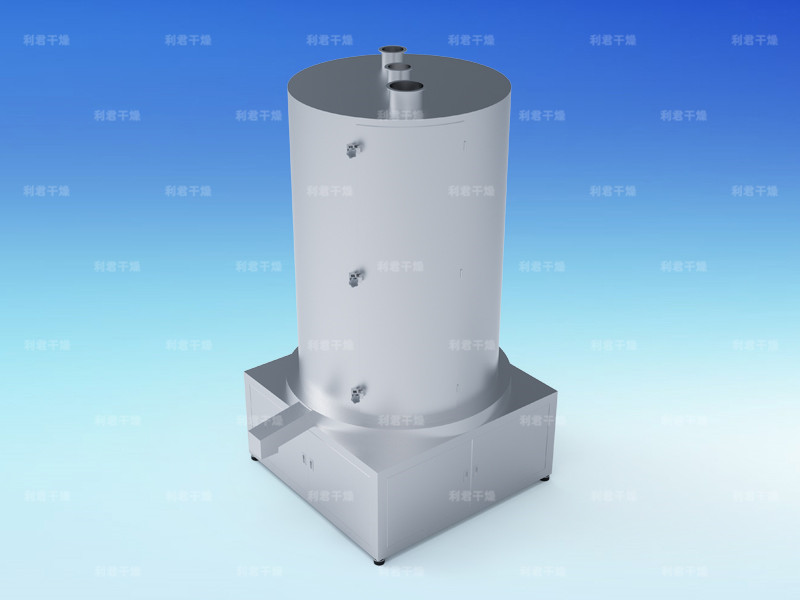 濕物料自頂部加料口進(jìn)入螺旋床內(nèi),在周向激振力及重力的作用下,物料沿螺旋床自上而下作跳躍運(yùn)動(dòng)直至最底層;同時(shí),潔凈的熱風(fēng)由螺旋床底部進(jìn)入,與分布在床上的物料進(jìn)行充分的傳熱和傳質(zhì)后,由頂部排濕口排出。